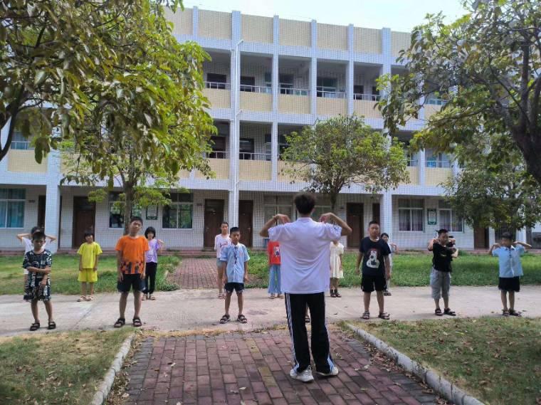 【嶺南師范學(xué)院教育科學(xué)學(xué)院07月15日訊】(通訊員:“星火鄉(xiāng)傳”社會(huì)實(shí)踐隊(duì))7月15日上午,在遂溪縣樂民鎮(zhèn)埠頭小學(xué)帶領(lǐng)三四年級合班班級在教學(xué)樓下,“星火鄉(xiāng)傳”社會(huì)實(shí)踐隊(duì)隊(duì)員李錦棋給當(dāng)?shù)厝哪昙壍男W(xué)生在上體育熱身課。
