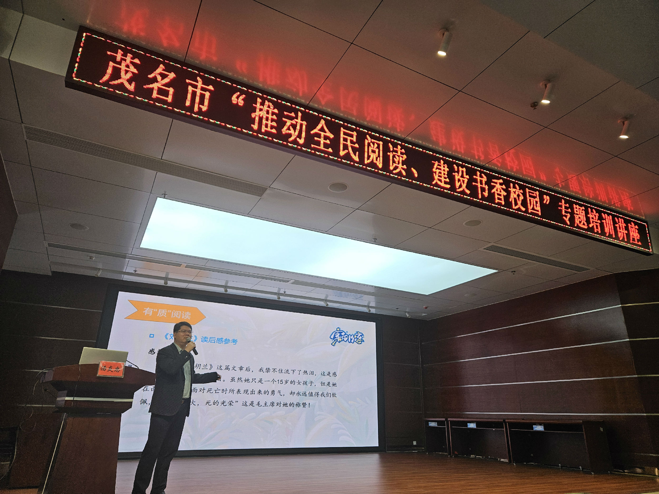 近日,中共茂名市委宣傳部、茂名市教育局主辦的茂名市“推動(dòng)全民閱讀、建設(shè)書香校園”專題培訓(xùn)講座活動(dòng)在茂名市教育局報(bào)告廳舉行,茂名市15000名教育工作者和教師代表通過(guò)線上線下方式共同參與了這場(chǎng)語(yǔ)文閱讀和寫作的知識(shí)盛宴。