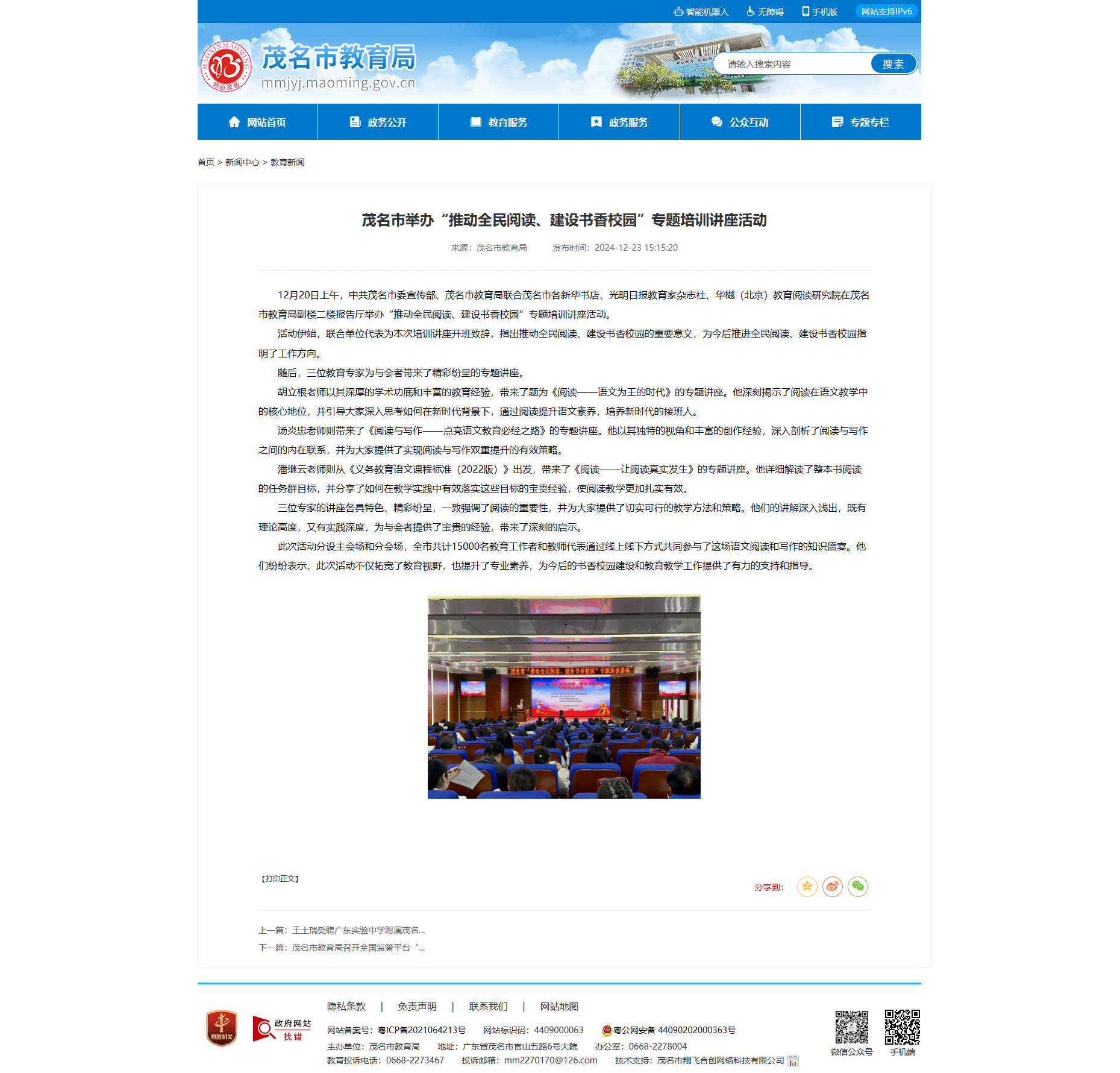 現(xiàn)場(chǎng)盛況茂名市教育局官網(wǎng)報(bào)道截圖