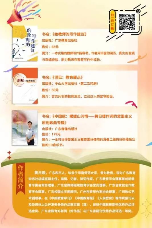 不故弄玄虛的教師寫作實(shí)用指導(dǎo)書,不落窠臼的教師寫作實(shí)用指導(dǎo)書,不紙上談兵的教師寫作實(shí)用指導(dǎo)書。2023年3月底,我會(huì)理事、廣東教育雜志社總編室副主任黃日暖的新作《給教師的寫作建議》由全國(guó)百佳圖書出版單位廣東教育出版社出版發(fā)行。