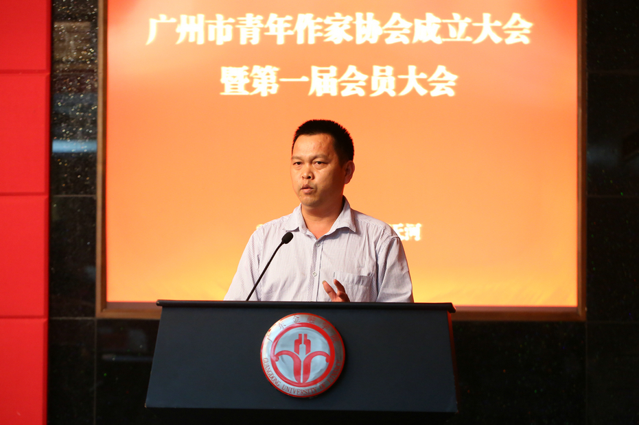 2014年6月15日,廣州市青年作家協會成立大會在廣東金融學院國際學術報告廳隆重舉行。這是我國省會城市、一線城市中首個具有獨立法人資格的市級青年作家協會,是廣州青年文學史上一個具有劃時代意義的里程碑,將為凝聚青年力量,繁榮文學創作,助力建設文化廣州、智慧廣州、幸福廣州,實現中國夢發揮積極作用!大會審議通過《廣州市青年作家協會章程》,無記名投票選舉產生了第一屆理事會、監事會。 湯炎忠當選為會長,鐘偉強當選為監事長,陳超、吳作歆、謝大彬、梁海文、陳錚、楊舟子等人當選為副會長,江秀昌當選為秘書長,石文娟、賀翰、李鴻斌、張嘉斌、陳敏、鄒旴旸、金夢瑤、李瑩姬、王自靈等人當選為理事,朱守銀、陳夏霓等人當選為監事。共青團廣州市委員會聯絡部部長、廣州市青年聯合會秘書長劉蘭,廣州市作家協會副主席謝友義等領導嘉賓,以及來自廣州地區的首批正式會員100余人出席了盛會。