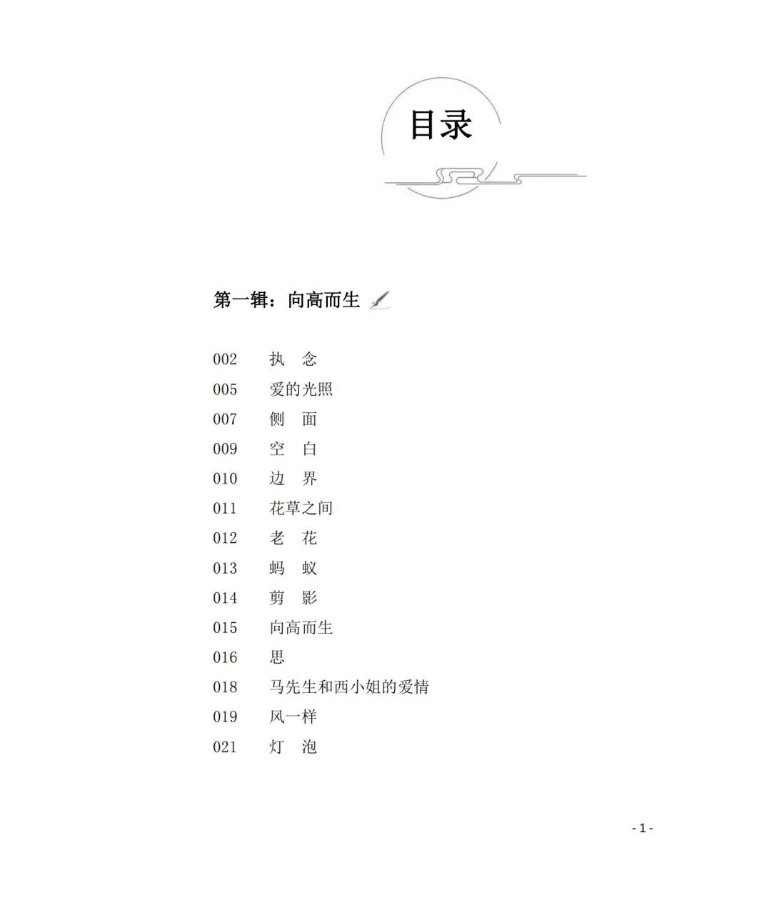 詩集《向高而生》,一共收錄詩歌作品128首。全書分四輯:第一輯,向高而生;第二輯,時光的弧度;第三輯,故鄉的浪花;第四輯,內心的風景。作品陽光、向上,闡釋美好生活,給讀者帶來美的享受與感悟。